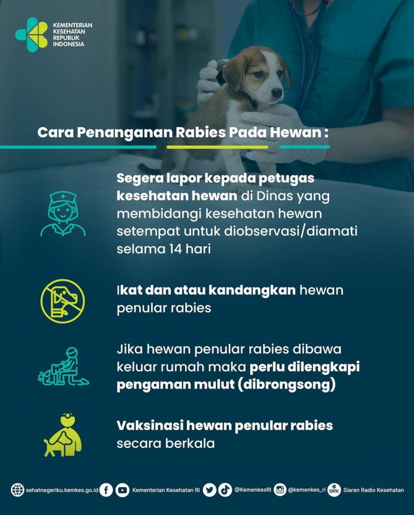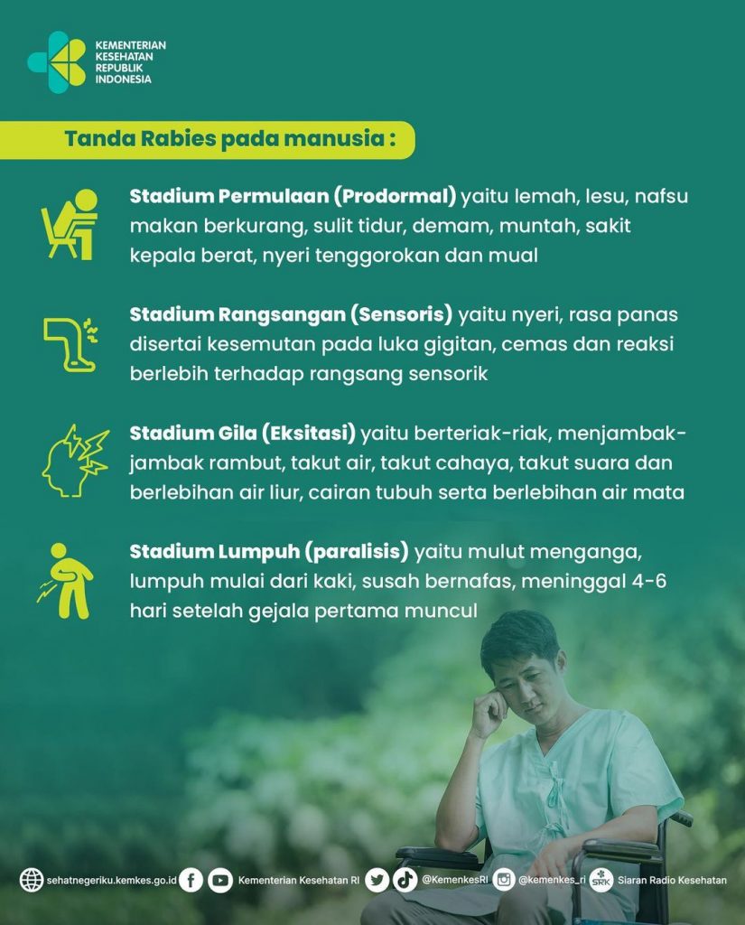 Virus rabies bisa ditularkan dari hewan terinfeksi ke manusia melalui gigitan, cakaran ataupun air liur. Setelah masa inkubasi, infeksi virus rabies akan menunjukkan sejumlah tanda dan gejala. Apa saja gejala rabies pada hewan dan manusia serta bagaimana penanganannya? Simak yuk!