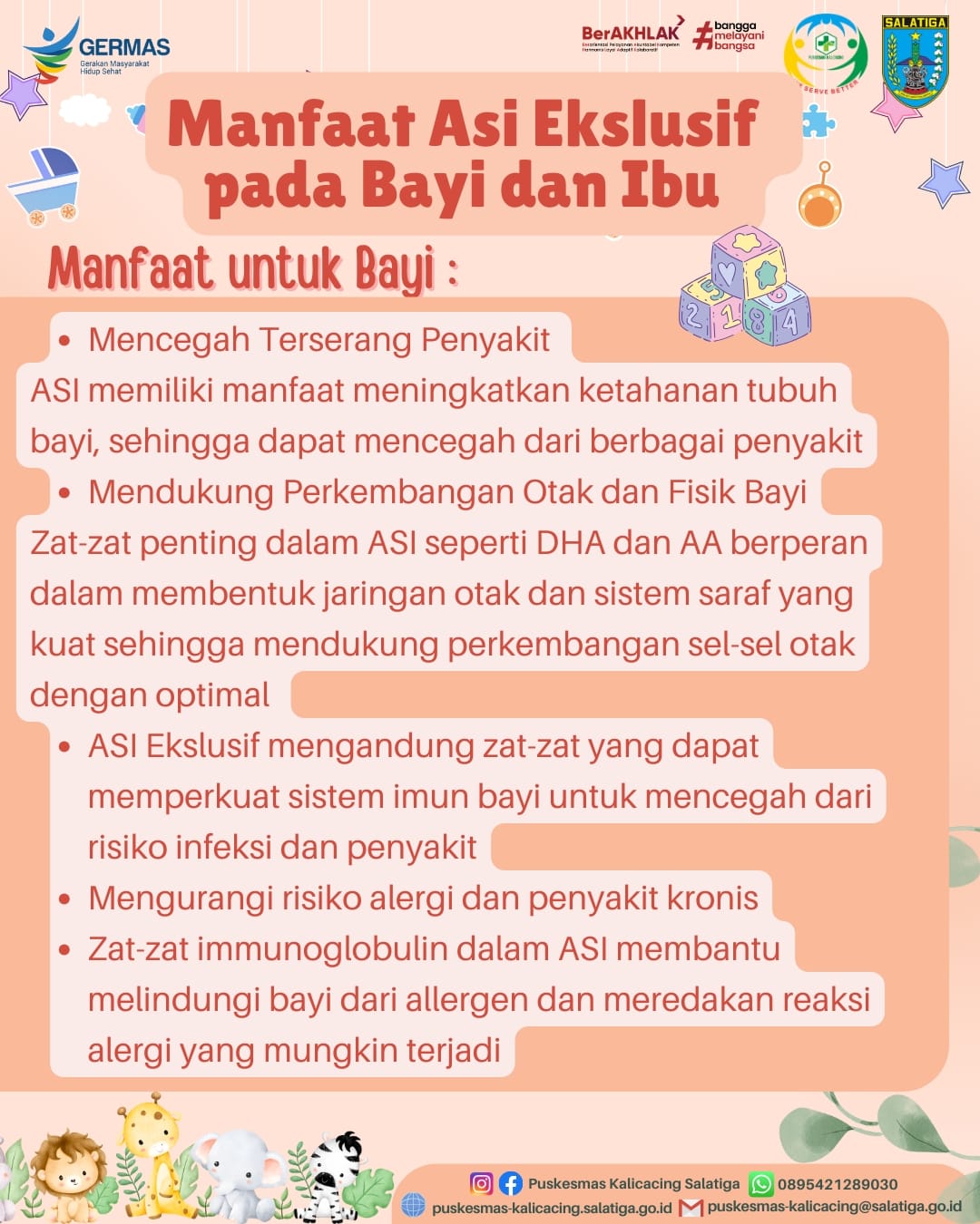 ASI (Air Susu Ibu) merupakan sumber nutrisi yang tak ternilai harganya dan tak tergantikan bagi bayi yang baru lahir. Pemberian ASI eksklusif pada bayi usia 0 hingga 6 bulan memiliki peran vital dalam mendukung perkembangan dan kesehatannya. Bukan hanya untuk si Bayi, memberikan ASI juga memiliki manfaat untuk Ibu. IbuJadiPandai #MasalahHamil #IbuSehatBayiSehat #LahiranLancar #AyoSehat #Kemenkes #anaksehat