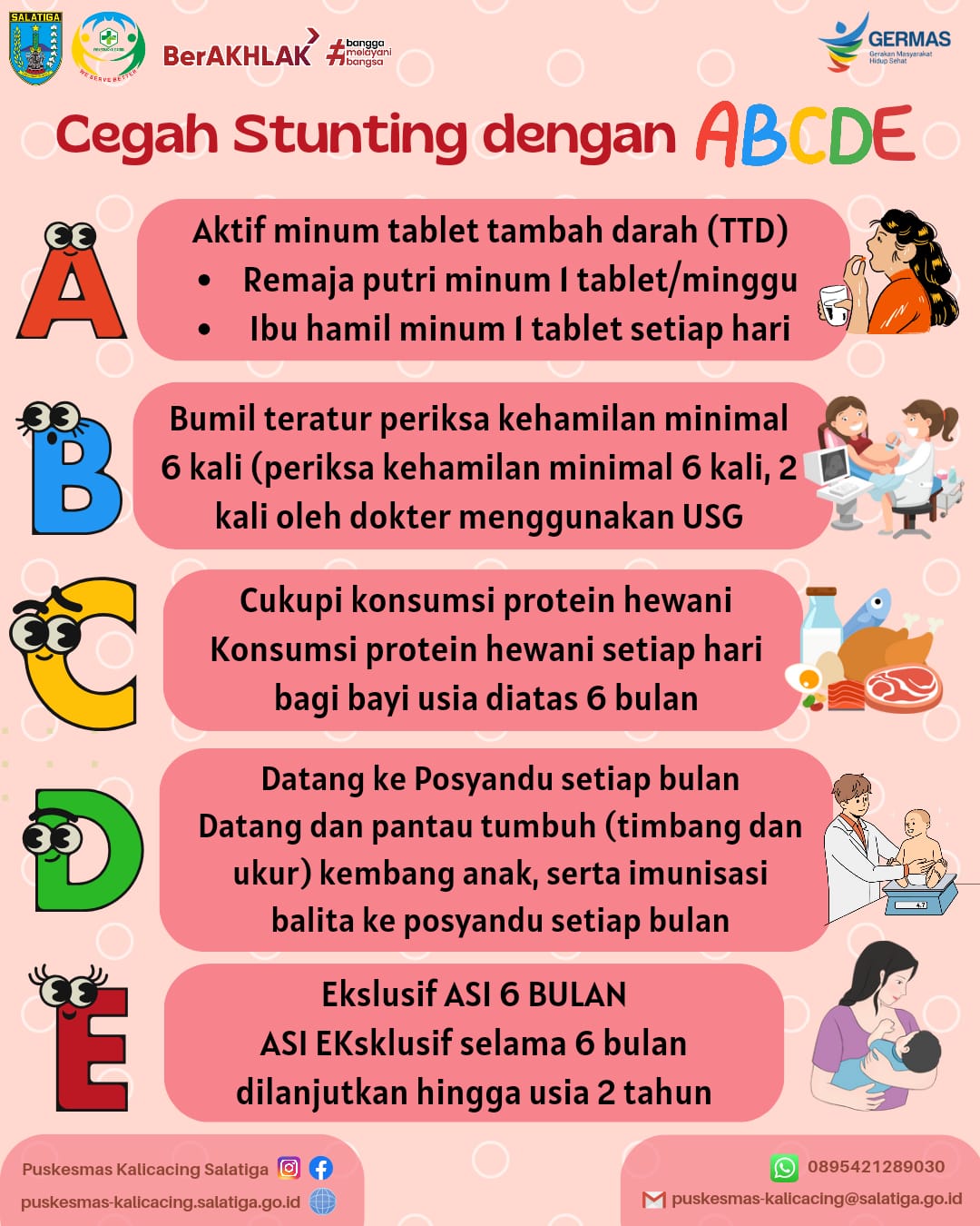 Cegah stunting dengan ABCDE, ternyata setiap hurufnya punya peran penting buat memastikan generasi tumbuh sehat dan kuat lho. Yuk mulai praktikkan mulai sekarang demi generasi sehat bebas stunting! #ABCDEcegahstunting #AyoSehat