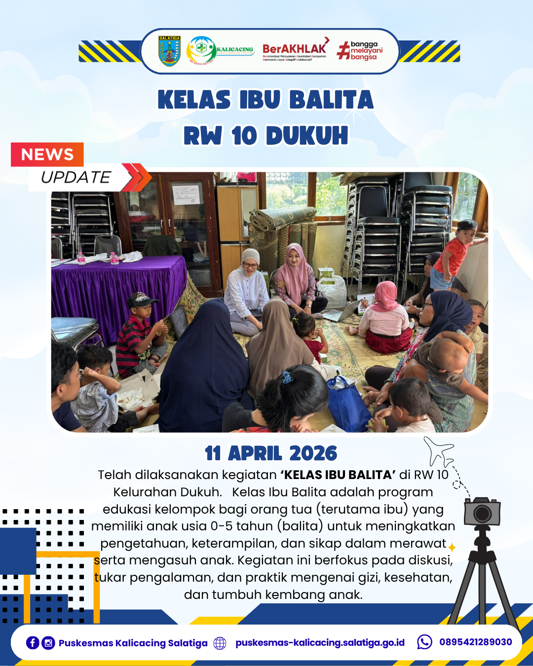 Telah dilaksanakan kegiatan ‘KELAS IBU BALITA’ di RW 10 Kelurahan Dukuh. Kelas Ibu Balita adalah program edukasi kelompok bagi orang tua (terutama ibu) yang memiliki anak usia 0-5 tahun (balita) untuk meningkatkan pengetahuan, keterampilan, dan sikap dalam merawat serta mengasuh anak. Kegiatan ini berfokus pada diskusi, tukar pengalaman, dan praktik mengenai gizi, kesehatan, dan tumbuh kembang anak.