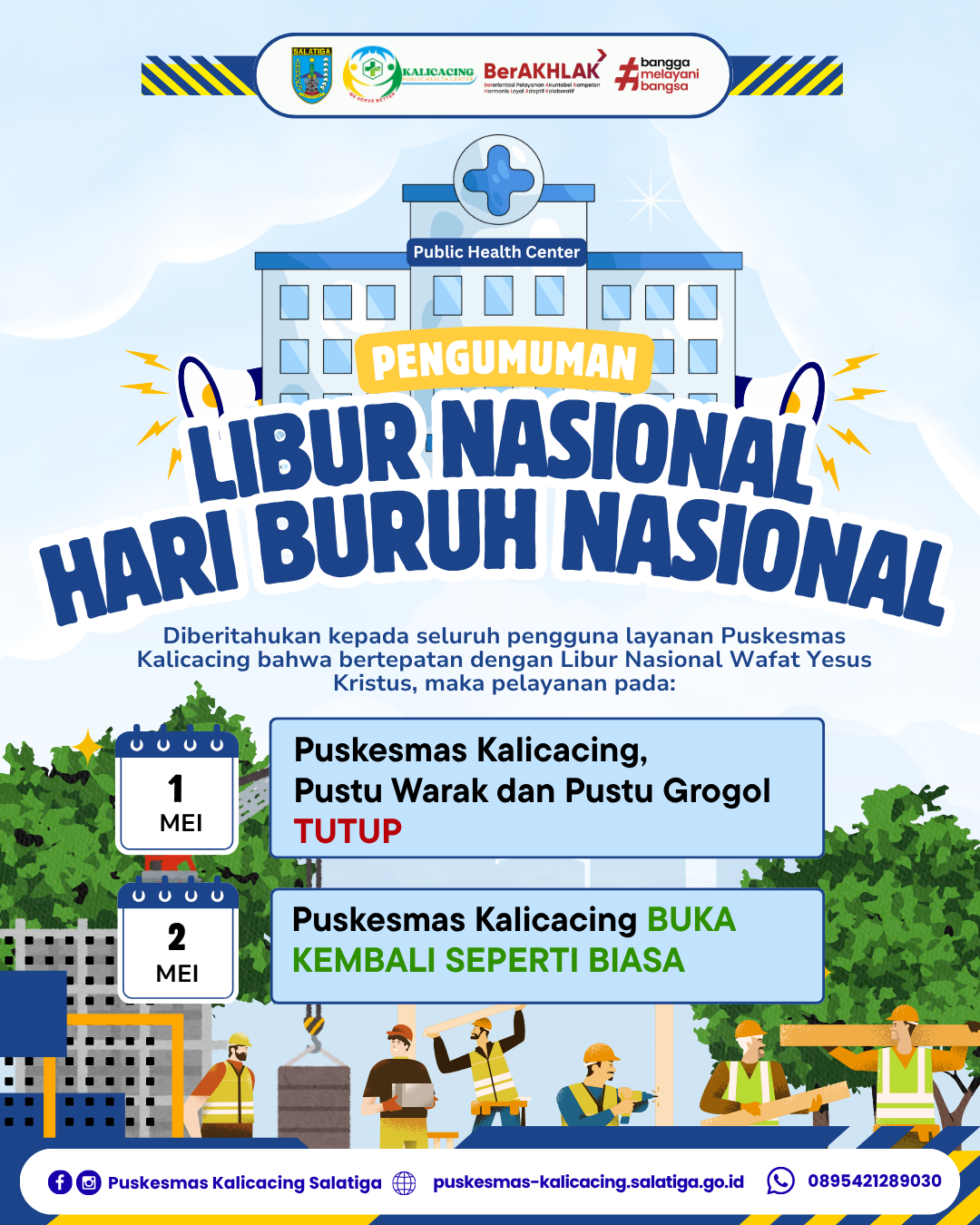 – Puskesmas Induk Kalicacing, Pustu Warak, dan Pustu Grogol TUTUP pada tanggal 1 Mei 2026